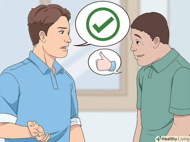 Вислухайте точку зору опонента. у разі розбіжностей з колегою не потрібно вважати, що все саме так, як ви бачите ситуацію. Покажіть готовність вислухати людину, прислухатися до його точки зору і враховуйте його почуття. Надайте людині достатньо часу висловити свої думки, почуття і переживання. Дозвольте йому говорити, навіть якщо він захищається. Також не потрібно перебивати співрозмовника. [7]- Не потрібно зациклюватися на своїй версії. Вислухайте людину. Можливо, ви зможете краще зрозуміти його або дізнатися нові відомості.