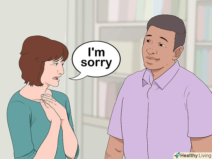 Принесіть вибачення за свої проступки. вибачтеся за свою роль у конфлікті. Зазвичай кожен учасник здійснює вчинки, які сприяють виникненню або збереженню конфлікту. Визнайте свою роль, висловіть жаль і прийміть відповідальність. Пам'ятайте: ви не берете всю провину на себе, а тільки приймаєте відповідальність за свої дії, які вплинули на ситуацію. [9]- Наприклад, скажіть: "мені шкода, що я сказала Ці образливі слова. Я була дуже засмучена, але не мала права так говорити».