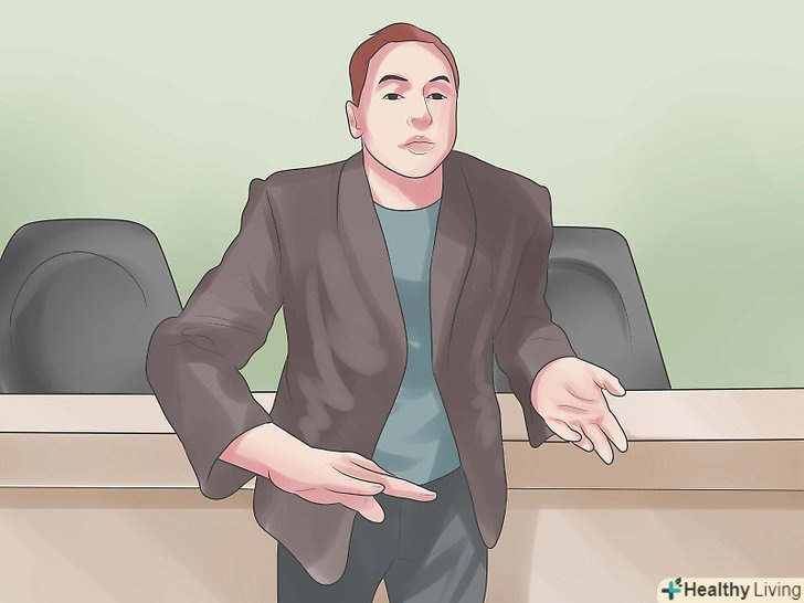 Використовуйте належний тон голосу при розмові. переконайтеся, що говорите переконливо, твердо і впевнено в собі. Не розмовляйте так тихо, що люди не можуть почути вас. Говоріть мало, але трохи голосніше, ніж зазвичай, щоб переконатися, що вас чують. До того ж, це змусить людей мовчати. Не кажіть нічого, щоб провокувати аргумент або може привести вас до неприємностей, але переконайтеся, що ви говорите те, що думаєте в трохи більш твердій манері, ніж зазвичай.- Ви завжди можете записувати себе вдома, щоб послухати як це у вас виходить.