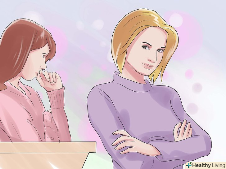 Не показуйте слабкість. зараз не час, щоб люди побачили, як ви незахищені, перелякані або в невизначеності. Якщо ви хочете залякати людей, то дозвольте їм думати як вам комфортно з самим собою, наскільки задоволені тим, хто ви є, і у вас немає 8 000 недоліків, про які ви віщаєте весь час. Якщо ви занадто часто показуєте свою слабкість, люди причепляться до цього і будуть бачити, що можуть бути знову недоброзичливими.- Це нормально розкритися друзям про свої слабкості і сумніви. Але коли справа доходить до публічного виходу і залякування, Тримайте це при собі.