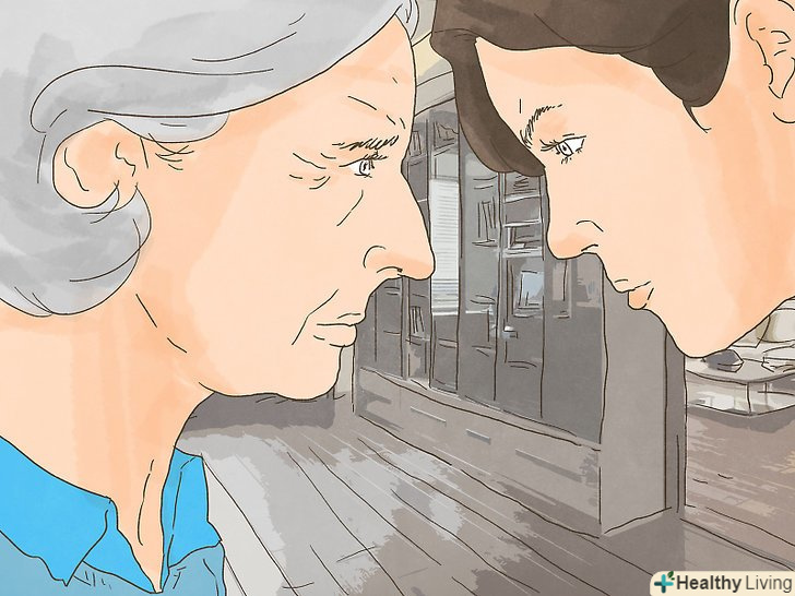 Визначте, в чому проявляється жорстоке поводження вашої свекрухи. залежно від ставлення свекрухи до вас, вам слід визначити, як діяти далі. Пам'ятайте, що насильство може приймати різні форми, але всі вони неприпустимі. Якщо ви стикалися з жорстоким поводженням з боку свекрухи в минулому, буде краще, якщо ви відверто поговорите з нею про це. Якщо ви продовжуєте відчувати насильство з її боку, від вас будуть потрібні більш рішучі дії. [6]- Якщо ваша свекруха жорстоко поводилася з вашим чоловіком, коли він був маленьким, ви можете сказати їй, що знаєте про це. Ви також можете сказати: "Я розумію, що це було в минулому. Нам непросто впоратися з цим, але ми рішуче налаштовані створювати здорову атмосферу в своїй родині».