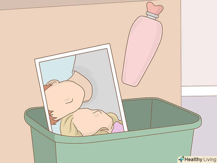 Приберіть всі якоря, які вам про нього нагадують. Якоря — це щось, що викликає емоційну реакцію, коли ви їх бачите, чуєте або нюхаєте, в силу того, що вони нагадують вам про колишнього. [3] це може бути все, що завгодно: предмети одягу, флакончик духів або одеколону, певна музика або пісні, записки, малюнки, квитки, фотографії — все, що нагадує вам про нього. Приберіть все з очей, подаруйте або віддайте кому-небудь все без залишку. [4]- Якщо ви приберете такі якоря, це значно допоможе вам рухатися вперед і пережити процес емоційного зцілення, оскільки реакція на якірні предмети часто буває мимовільною. Ви можете відчувати себе прекрасно, бути повними позитиву, а потім раптом відчути запах одеколону, яким користувався ваш колишній, і знову відчути біль. [5]