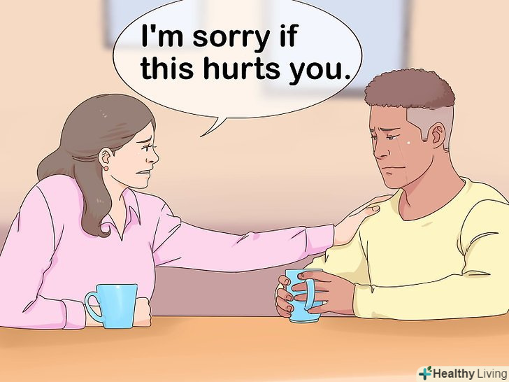 Скажіть йому, що вам шкода, якщо буде боляче. навіть якщо ви хочете чітко донести свої думки про розставання, все одно краще згадати, що ви шкодуєте про можливе заподіяння болю. Спробуйте поставити себе на його місце і уявити, що він відчуває. Можна сказати:- "мені шкода, якщо це боляче чути".
