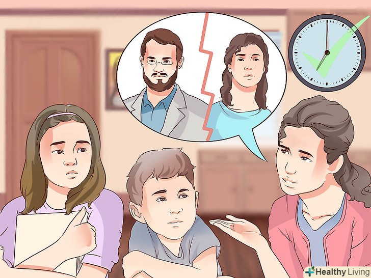 Поговоріть з потрібними людьми. ви повинні звернутися до інших значущих для ваших дітей близьким людям і повідомити їм про розлучення. Вони доглянуть за вашими дітьми, коли ті в школі або не поруч з вами. Ви зможете дізнаватися про те, як йдуть справи у дітей, і вам повідомлять в разі будь-яких побоювань з приводу їх поведінки через розпад сім'ї. [12]- Ви можете сказати цим близьким людям: "ми з чоловіком недавно розійшлися. Я турбуюся про те, як це може вплинути на дітей. Я знаю, що для них це буде важкий час. Чи можу я попросити вас спостерігати за дітьми в найближчі кілька тижнів або місяців і повідомляти мені про проблеми?»