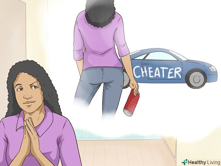 Візуалізуйте, як ви домагаєтеся помсти і до чого це призводить. як правило, думки про помсту приносять набагато більше задоволення, ніж її реальне здійснення. Уявіть, що ви робите щось погане колишньому хлопцеві, наприклад, пишете погані слова перед його будинком або спалюєте його улюблені сорочки. Насолоджуйтесь задоволенням « "спостерігаючи" за його стражданнями. Потім уявіть, що може статися, якщо ви дійсно це зробите. [13]- Наприклад, припустимо, що колишній хлопець змінив вас. Можна уявити, як ви йдете до його будинку і розпилюєте з балончика слово «зрадник» на його машині. Потім уявіть, що йому доводиться їздити в машині і відчувати незручність. Далі подумайте про наслідки фактичного виконання цієї дії. Наприклад, його мама може дуже засмутитися, а вас можуть заарештувати або зобов'язати виплатити гроші за пошкодження машини.