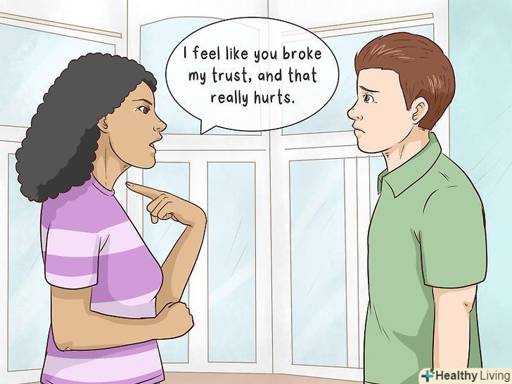 Спробуйте обговорити свої почуття з колишнім хлопцем, якщо це допоможе. можливо, ви не хочете більше його бачити, проте часом вираз болю колишньому хлопцеві допомагає полегшити душу. Якщо ви вважаєте, що це може допомогти, попросіть його поговорити з вами особисто або по телефону. Потім використовуйте твердження від першої особи, щоб розповісти йому, як його дії вплинули на вас. [15]- Твердження від першої особи дозволять зробити акцент на вас і пом'якшити звинувачення на адресу іншої людини. Наприклад, скажіть:» мені здається, що ти мене не поважаєш«, — замість:»Ти мене не поважаєш".