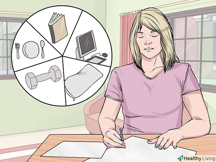 Створіть розпорядок дня. розпад шлюбу може перевернути ваш світ з ніг на голову. Тому дуже важливо дотримуватися постійного розкладу, щоб не вибиватися з колії і звикнутися з новою главою у Вашому житті. [14]- Не викреслюйте з розкладу регулярні зустрічі з подругами вечорами або тренування в спортзалі. Якщо ви насолоджуєтеся цим проведенням часу і з нетерпінням чекаєте, збережіть його у своєму повсякденному житті.