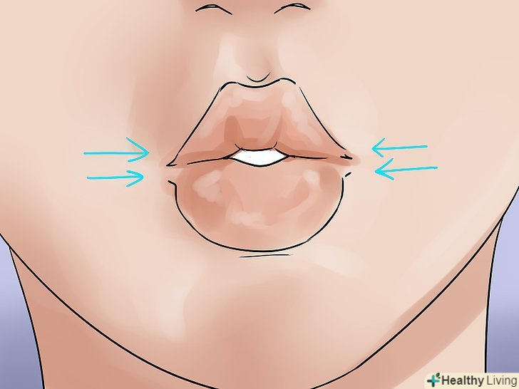 Зробіть губи «бантиком». вони повинні бути закруглені, щоб слина випадково не вилетіла завчасно. Щоб випадково не потрапити в кого-небудь, округліть губи.
