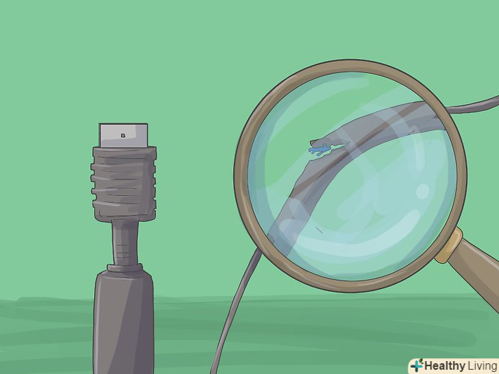 Переконайтеся, що кабелі не переламані.якщо кабель на вигляд погнутий або зіпсований, він може бути переламаний всередині. До тих пір, поки ви не зможете переконатися в цьому, пошукайте проблеми зовні. Доказом зламаного кабелю може служити тріснута або пошкоджена ізоляція. Стирчить зсередини жила теж показник поломки.