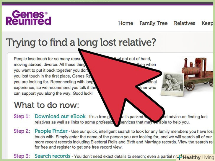 Використовуйте генеалогічний сервіс в Інтернеті. такі генеалогічні сайти як Ancestry.com або FamilySearch.org надають можливість доступу до архівів, які допоможуть вам побудувати сімейне дерево і дізнатися більше про невідомих вам родичів. [4] деякі генеалогічні сервіси в Інтернеті надають можливість проведення тесту ДНК на додаток до знайденої вами інформації в електронних базах даних.- Використовуйте сервіси визначення ДНК, які допоможуть вам отримати точні результати. Генеалогічні послуги з визначення ДНК успішно об'єднали багатьох братів і сестер, а також батьків та їхніх дітей. Якщо зникла людина ваш кровний родич, генеалогічний сервіс допоможе вам визначити місцезнаходження цієї людини. [5] [6]