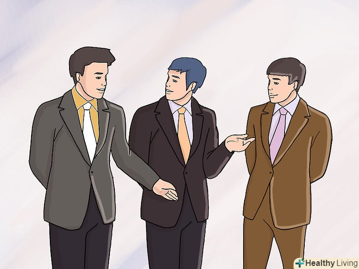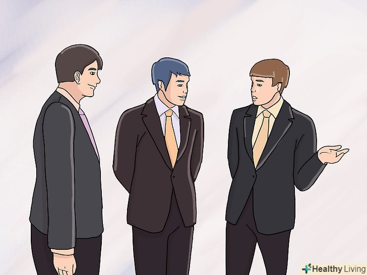 Прагніть до групи з трьох осіб. там, де розмовляють троє, зазвичай є місце для ще одного співрозмовника. Вибирайте "групи" з трьох, які стоять на видних місцях, проходячи між ними або навколо них; ці групи вважаються кращим вибором, ніж люди, які стоять поруч і шепочуться. [5]