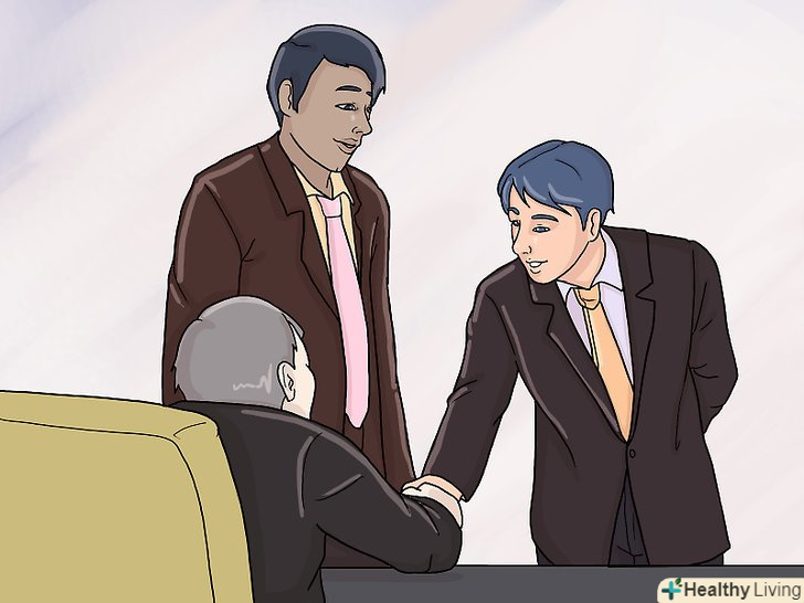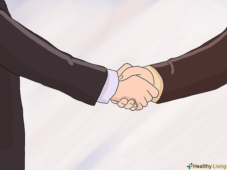 Потискайте руку під час знайомства. це повинно бути тверде трисекундне рукостискання з підтриманням зорового контакту.