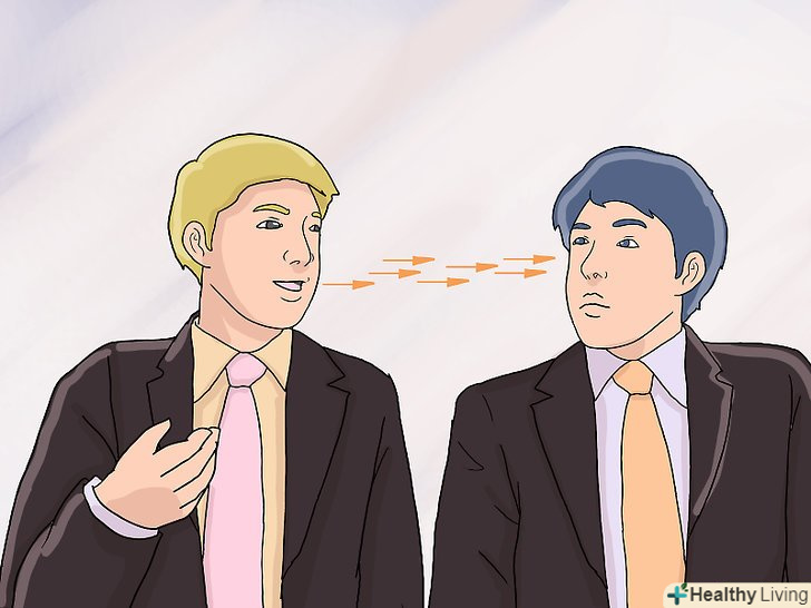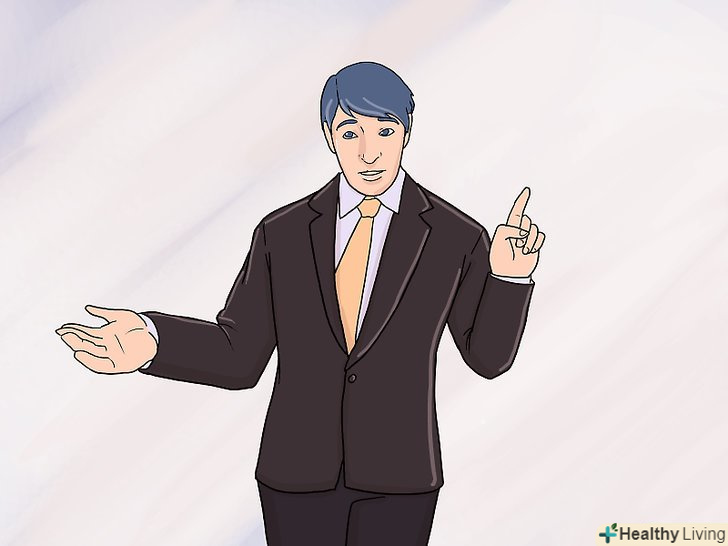 - Не бійтеся говорити жестами рук. Висловлюючи свою точку зору, краще жестикулювати, а не схрещувати руки або торкатися до шиї і обличчя. Це так само свідчить про довіру, як зоровий контакт і широка позиція. [2]
