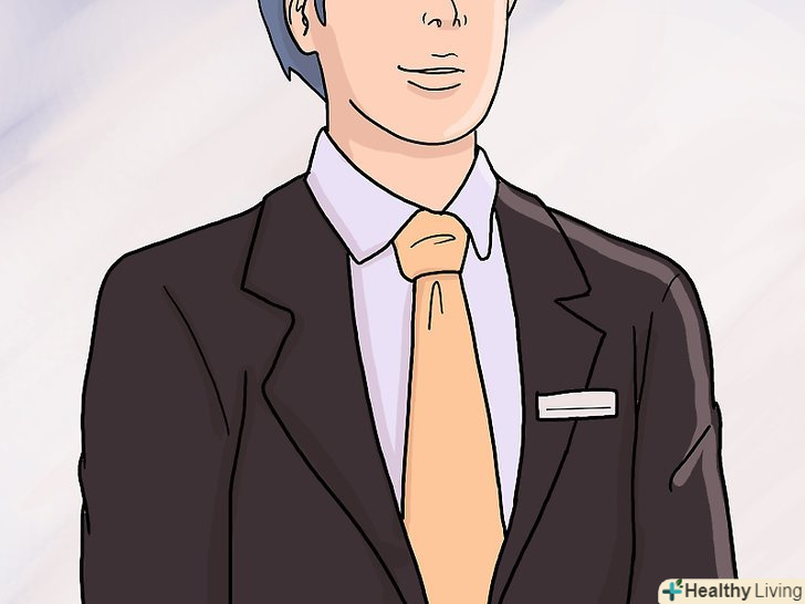 Заповніть свій бейджик. приколіть його до верхньої правої сторони, нижче плеча. Правша, потискуючи вашу руку, буде дивитися саме в це місце. [4]
