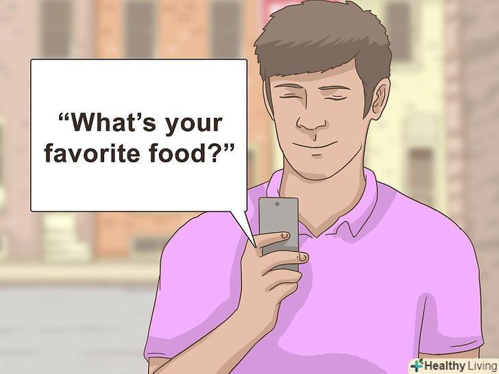 Задавайте людині питання про нього. якщо ви не знаєте, про що поговорити, можна попросити його розповісти про себе. Читайте його відповіді і задавайте йому питання на їх основі. Чим більше він буде відкриватися і писати про життя, тим частіше у нього буде виникати бажання листуватися з вами. [7]