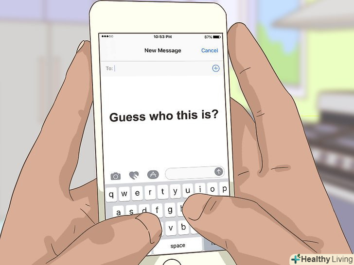 Повідомте, хто ви, якщо у людини немає Вашого номера. незважаючи на те, що ореол загадковості може викликати інтерес, не слід занадто довго приховувати свою особистість, інакше це може здатися моторошним. Якщо у вас є номер людини, але у нього немає Вашого, завжди буде хорошим тоном представитися.- Почніть повідомлення з питання, наприклад: "Вгадай, хто це?» - а потім назвіть своє ім'я. Або напишіть так: "Привіт, це Антон. Я дізнався твій номер у Аліни"»