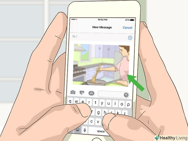 Надсилайте фотографії того, чим ви займаєтеся. фотографії-відмінний спосіб дати співрозмовнику уявлення про те, що ви робите. Не надсилайте неприйнятні зображення або занадто багато Селфі. Якщо ви будете відправляти цікаві фотографії, співрозмовник захоче продовжити спілкування з вами. [6]