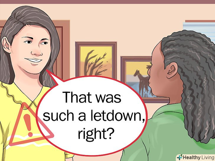 При необхідності міняйте теми. звертайте увагу, чи комфортно людині обговорювати ту чи іншу тему. Можливо, він почне нервувати, якщо ви піднімете певне питання, і замовкне. А можливо, обговорення просто вичерпає себе. Якщо ви обидва щосили намагаєтеся придумати, що б ще сказати з даного приводу, знайдіть нову тему. [9]- Краще перейти на суміжне питання. Наприклад, якщо ви обговорювали книги, змістите фокус розмови на фільми.