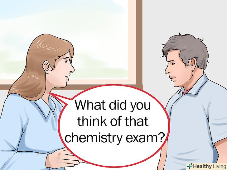 - Можна також підняти нову тему за допомогою питання. Подумайте, що було б доречно згадати в даній ситуації. Наприклад, якщо ви спілкуєтеся з людиною в школі, скажіть щось на кшталт: «Що ти думаєш про іспит з хімії?»