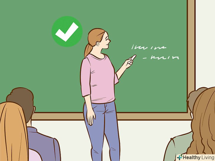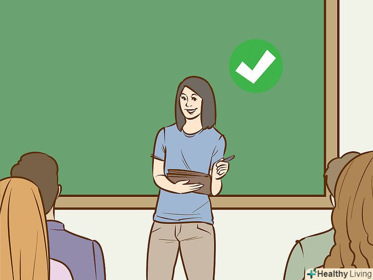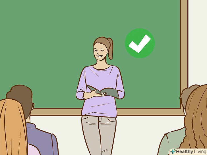 - Якщо ви почнете нервувати, дивлячись на людей, спробуйте дивитися трохи вище їх голів. Таким чином, ви все ще будете дивитися в зал, але при цьому концентруватися на мові, а не на виразі облич слухачів.