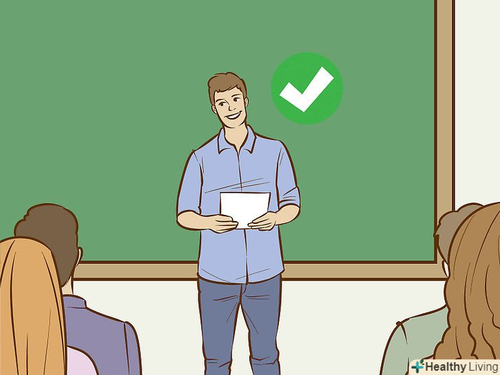 Виступ з промовою перед класом може викликати хвилювання. Однак, якщо ви виберете цікаву для вас тему і відрепетируете мова заздалегідь, ви зможете позбутися від нервової тремтіння! Під час виступу говорите в нормальному темпі і чітко промовляйте слова. Дивіться на своїх слухачів так, ніби ведете з ними бесіду. Не забувайте, що вони теж бажають вам успіху.