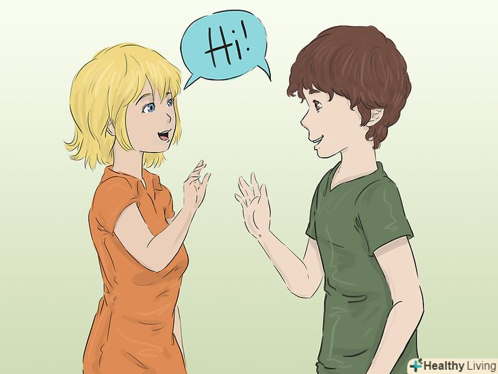 Представтеся. Якщо ви вже офіційно представилися, то все, що вам потрібно сказати, це «привіт» або «Здрастуйте». Пам'ятайте, що під час привітання потрібно дивитися прямо в очі предмету свого обожнювання. Ви можете випадково сказати що-небудь зайве, якщо будете посилено розглядати свої туфлі під час привітання.