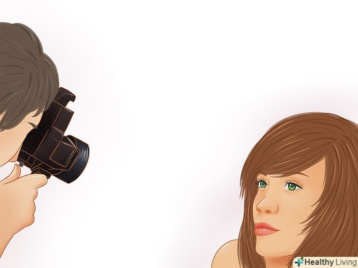 Виберіть точку для фокусування. важливо, щоб ви могли зосередити погляд так, що ваші очі не будуть всюди бігати і створювати відчуття занепокоєння або невизначеності. Вибравши точку фокусування, ви повинні будете кудись націлити свій погляд і зробити його постійним. Люди і речі, на яких рекомендують зосереджуватися: фотограф, камера, обличчя, хтось, мотивуючий вас за спиною фотографа, об'єкт на правильному рівні, на який вас попросили зосередити погляд, або їжа, яку Ви б із задоволенням з'їли.