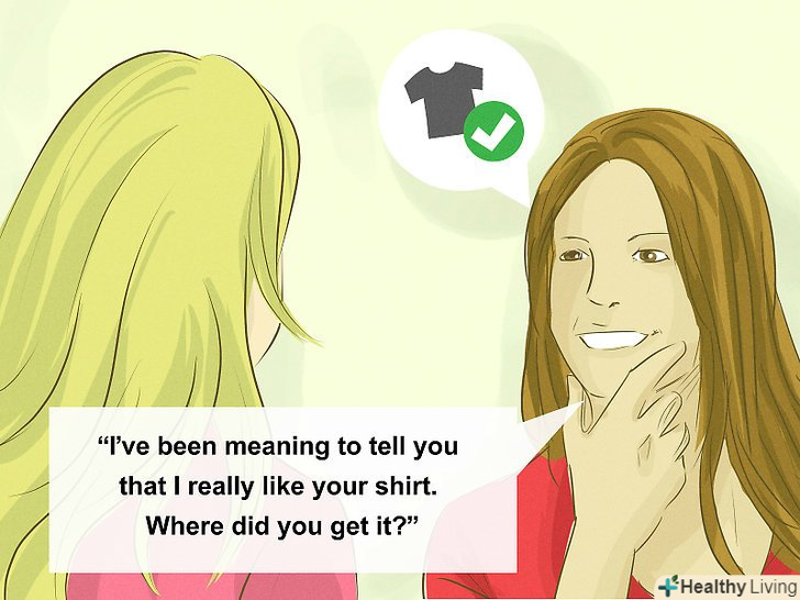 Робіть компліменти. це завжди безпрограшний варіант, якщо комплімент доречний. Наприклад, можна сказати щось на кшталт: "до речі, хотів сказати, що мені дуже подобається твоя сорочка. Де ти її придбав?"Таким чином, ви направите бесіду в нове русло і зробите людині приємно. [7]- Якщо ви хочете зав'язати невелику розмову, то можете зробити комплімент з приводу особистісних якостей або досягнень співрозмовника, а компліменти, що стосуються зовнішності, краще притримати для флірту .