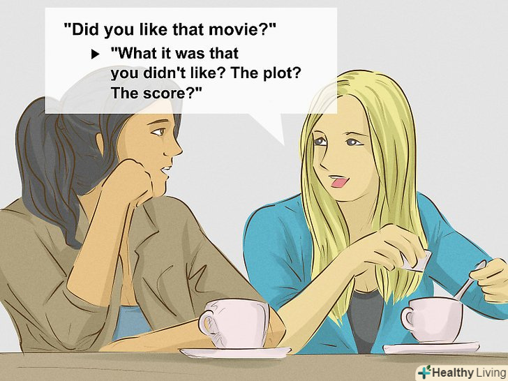 - Якщо співрозмовник не надає багато інформації про себе, то, можливо, він просто скромний. Спробуйте копнути глибше і побачити, чи відкриється він вам. Наприклад, якщо ви запитали " Вам сподобався фільм?", і вам просто дадуть відповідь "Ні", то ви можете запитати, що саме не сподобалося. Сюжет? Рейтинг? Підбір акторів? Це дасть вам можливість оживити розмову і краще пізнати співрозмовника.
