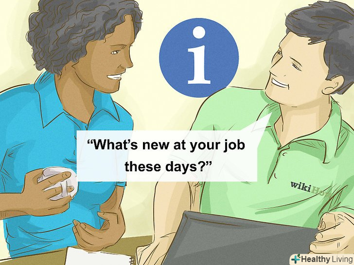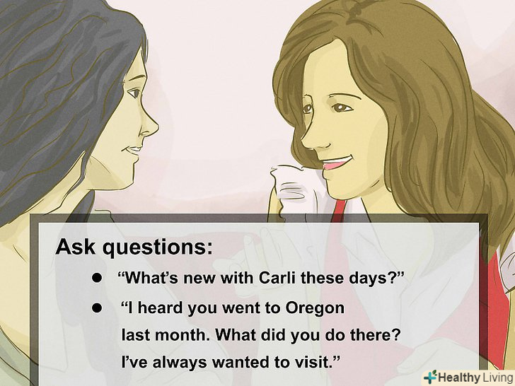 Задавайте питання. дізнайтеся якомога більше про інтереси і хобі вашого співрозмовника. Люди обожнюють розповідати про те, що їм подобається. Це відмінний спосіб дізнатися їх краще, а, в разі незручного мовчання, швидко змініть тему розмови. [13] це також позбавить від незручностей майбутні бесіди, оскільки ви обидва дізнаєтеся про інтереси і захоплення один одного.- Наприклад, говорячи про дітей, ви можете запитати: “як поживає Ліза?”