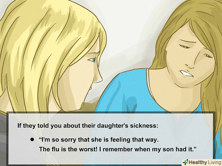 Будьте доброзичливі. це заспокоїть вашого співрозмовника і сприятиме розмові. Не забувайте посміхатися і з повагою ставитися до слів іншої людини. Прийміть свого співрозмовника, це дасть йому можливість відчувати себе набагато комфортніше в бесіді з вами, і таким чином продовжить вашу бесіду. Не забувайте давати іншим можливість висловитися. Хороша розмова залежить від усіх учасників, не тільки від одного. [4]- Підтверджуйте те, що говорить інша людина, повторюючи частину сказаного їм. Якщо вам розповідають про хворобу своєї дочки, то ви можете відреагувати наступним чином: “дуже шкода це чути. Застуда це найгірше. Пам'ятаю, коли мій син теж захворів". Це не тільки допоможе утримати розмову на плаву, але і покаже, що ви слухаєте і дійсно співчуваєте своєму співрозмовнику.