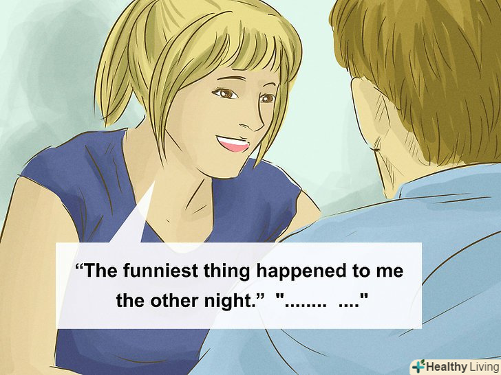 Розкажіть смішну історію. Поділіться новою інформацією про себе у вигляді розважальної історії, сказавши щось на кшталт: "зі мною вчора стався такий кумедний випадок!"Поділіться своїм незабутнім досвідом. Можливо, нещодавно у вашій квартирі зачинилися двері, і вам потрібно було придумати, як потрапити додому. Хороша історія розважить вашого співрозмовника і продовжить саму розмову. [6]