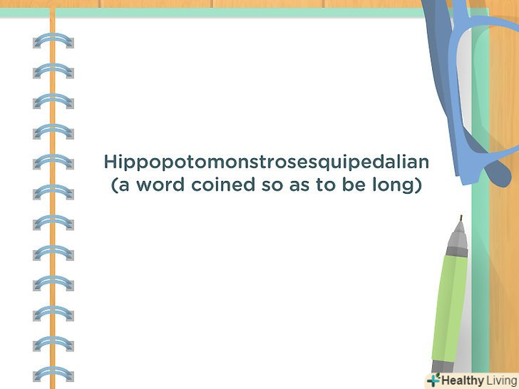 Почніть активно збирати нові слова, придатні для використання. пошукайте списки важких слів, Підпишіться на щоденну розсилку і ніколи не втрачайте можливість подивитися значення незнайомого слова.- Через деякий час ви можете виявити, що підхопили серйозний випадок логолепсії (любов до слів). Якщо ви пошукайте, то знайдете слова, які легко полюбити. Візьмемо "метилпропенілендігідроксіціннаменілакріловая" як приклад. Це найдовше слово, яке на даний момент зафіксовано в російській мові.