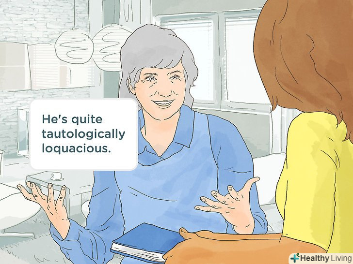 Використовуйте довгі слова. ніколи не застосовуйте односкладові слова там, де підійде трискладове. Інакше кажучи, утримуйтеся від моносиллабічних ітерацій, коли це доцільно. [3]- Якщо ваш лексикон досить архаїчний, можете додавати слова за допомогою синонімів-прикметників. Наприклад, можна описати багатослівного оратора як "тавтологічно балакучого", що трохи яскравіше звучить ,ніж "надмірно повторюваний", хоча значення, по суті, одне і те ж.