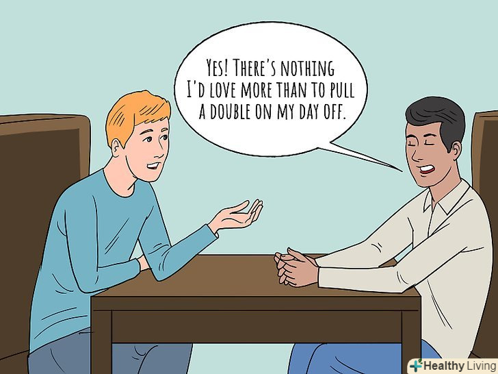 Жести суперечать словам. невербальні сигнали здатні багато розповісти про наміри людини. Якщо людина театрально падає на диван зі словами: "я в справі. Хочу якомога швидше зайнятися прибиранням в гаражі", - він говорить з сарказмом. [11]- Інші жести включають енергійні кивки і демонстрацію відстовбурченого великого пальця при протилежному значенні сказаного.