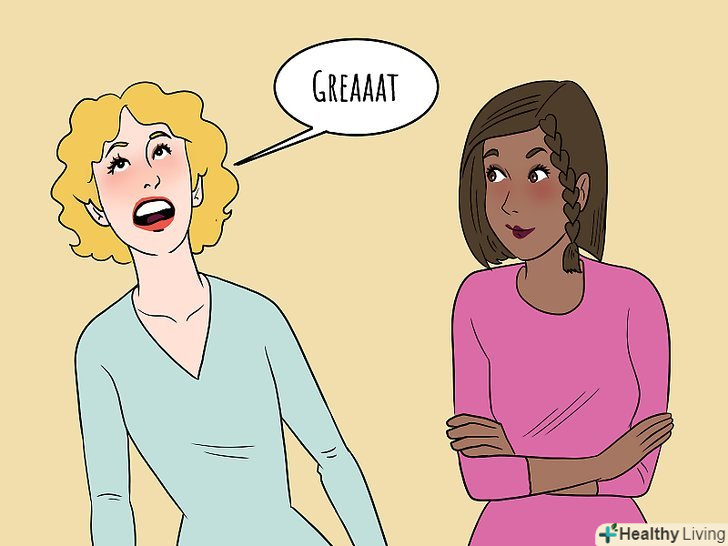 Зітхання і бурмотіння. Люди висловлюють сарказм різними способами. Іноді людина вимовляє саркастичну фразу після подиху або тихо бурмоче, особливо в галасливій обстановці. [7]- Якщо людина важко зітхнув, можливо, він хоче, щоб ви розпізнали сарказм в його словах.