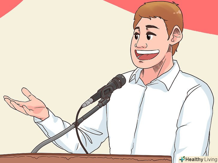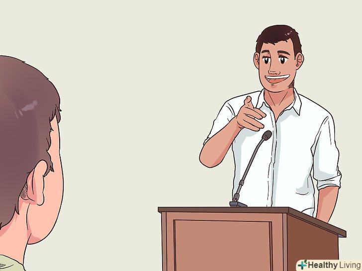 Слідкуйте за реакцією слухачів. іноді реакція аудиторії не відповідає очікуванням оратора, і це нормально. Наприклад, слухачі можуть не оцінити ваші жарти. В цьому випадку змініть тон відповідно до реакції в залі. [15]- Наприклад, якщо слухачі сміються з ваших жартів, то дочекайтеся тиші і потім продовжуйте. Якщо ніхто не сміється, але присутні посміхаються або кивають, не потрібно викидати жарти з мови. Слід розуміти-чим менше присутніх, тим менш бурхливою може виявитися реакція, так як людям простіше розкріпачитися у великій компанії.