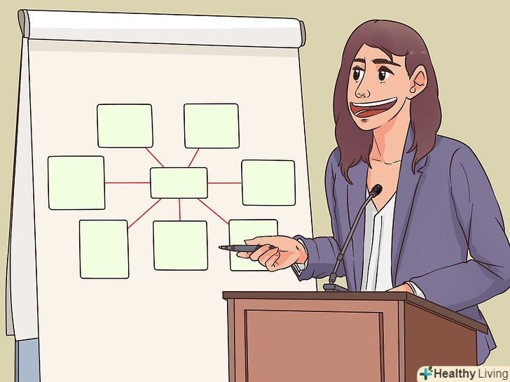 Тримайте себе в руках в моменти хвилювань. хвилюватися перед виступом цілком нормально, тому не ставтеся до себе занадто строго. У разі хвилювання використовуйте різні методи, які допоможуть вам заспокоїтися: [21]- Уявляйте, що презентація проходить на вищому рівні;
