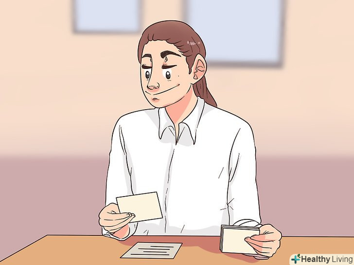 Підготуйте презентаційні матеріали на зразок карток з нотатками. звичайно, не потрібно просто читати мову по записах, але картки допоможуть не збитися з думки і нічого не упустити. Запишіть основні ідеї, щоб вони були під рукою. [7]- Також можна записати ключові слова, щоб не забути про важливі поняття.