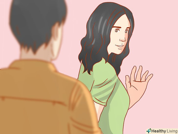 Спробуйте знайти зоровий контакт і посміхнутися. це додасть вам впевненість, і ви зможете подолати нервозність. Цим ви позначите свою присутність і дасте знаменитості знати, "Гей, я тут, і я зацікавлений!"Не забудьте посміхнутися; це зробить вас доброзичливим і доступним. Однак не посміхайтеся занадто довго, щоб не збентежити їх.