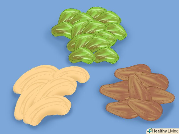 Цільнозернові продукти. намагайтеся вибирати цільнозерновий хліб і макарони. При цьому не забувайте про інші цільнозернові продукти – вівсяну кашу, кіноа і неочищений рис. Майже половину зернових продуктів повинні складати цільнозернові види. [31]- Дорослим жінкам необхідно вживати в їжу 170 грамів цільнозернових продуктів в день, а після 50 років скоротити цю кількість до 140 грамів. Дорослим чоловікам потрібно 230 грамів цільнозернових продуктів в день у віці до 30 років, 200 грамів у віці до 50 років і 170 грамів після 50 років. [32]