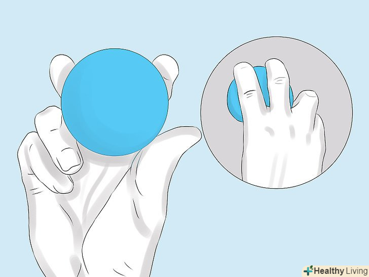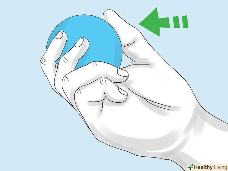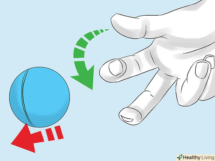 Здавіть м'яч з одного боку великим пальцем, а з іншого – іншими чотирма пальцями.