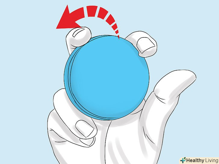 Візьміть м'яч. захоплення для крученого м'яча відрізняється від звичайного захоплення.- Зверніть увагу на те, що шов м'яча повинен бути розгорнутий перпендикулярно пальцях.