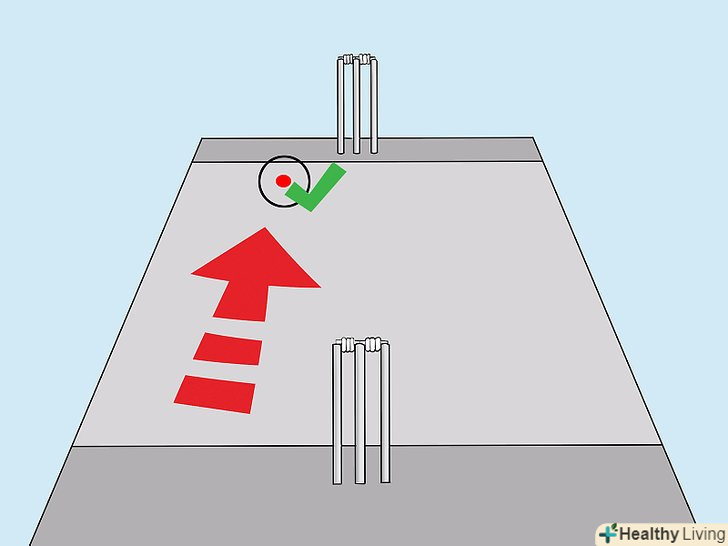 Прицільтеся. ви повинні кинути м'яч до зони хвіртки лівіше бетсмена. Якщо ви запустите м'яч занадто близько до хвіртки, бетсмен може встигнути зреагувати і відбити м'яч убік.
