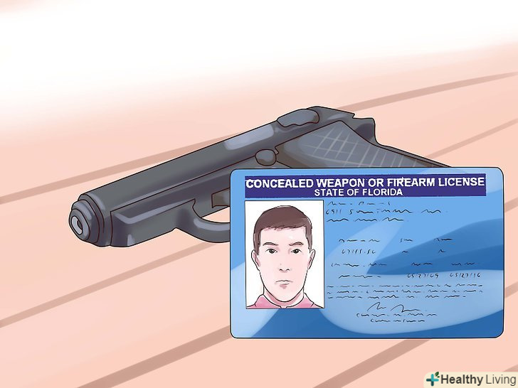 Розберіться, навіщо потрібна ліцензія на приховане носіння. у Флориді більшість форм відкритого носіння (розмахування зброєю у відкриту, демонстрація на людях) заборонені законом, за винятком випадків участі в певних заходах: тренування на стрільбищі, виконання поліцейським/військовим службових обов'язків і т.д. щоб мати можливість носити зброю для самооборони, необхідно отримати ліцензію на приховане носіння. Приховане носіння без Ліцензії є злочином, за який передбачена кримінальна відповідальність.- Пам'ятайте, що у Флориді наявність ліцензії на приховане носіння зброю крім пістолета дає право на носіння ножа, газового балончика, кийки та іншої зброї. [9]