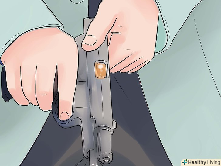Перевірте, чи не заряджена зброя. Кожен раз, коли ви берете зброю, перевіряйте, чи не заряджено воно. Якщо ви тільки що принесли зброю з магазину, перевірте, чи не заряджено воно. Якщо ви тільки що дістали зброю з місця зберігання вперше за багато років, перевірте, чи не заряджено воно. Якщо ви тільки що розрядили зброю, перевірте, чи не заряджено воно.- У разі револьвера, поставте його на Запобіжник, відкиньте барабан і переконайтеся, що всі камори порожні. У разі пістолета, вийміть обойму, відтягніть назад затвор, загляньте в патронник і упевнитися, що там немає патрона. Якщо в патроннику є патрон, пересмикніть затвор і патрон автоматично вилетить.