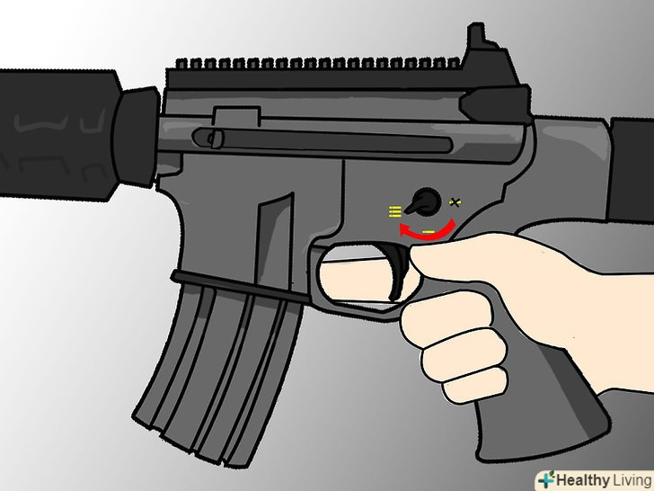 Зніміть гвинтівку з запобіжника. це буде перемикач або кнопка збоку від спускового гачка, вид запобіжника залежить від гвинтівки.