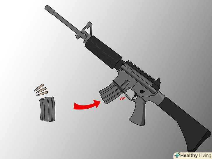 Знайдіть де знаходиться магазин. наповніть магазин патронами і переконайтеся, що вони триматися на місці..