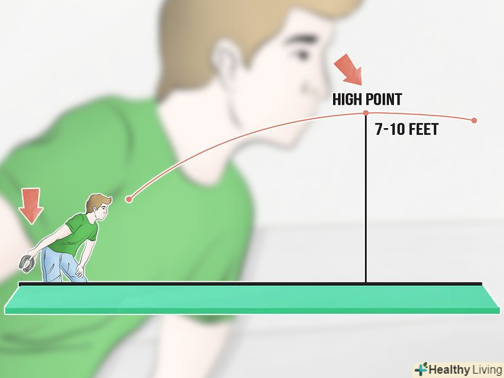 Виберіть правильну траєкторію. під час хорошого кидка, підкова летить на висоті 7-10 футів (2,1-3 м), а потім падає вниз у кілочка під кутом 30-45 градусів [15] [16] якщо ваш кілочок закріплений піском або гравієм, як в основному це і буває, при сильному кидку підкова може приземлитися перед кілочком і ковзати по ньому. Якщо ви збираєтеся брати участь в турнірі, то це погана звичка, так як на турнірах використовують глину замість піску, але це хороша стратегія для випадкових гравців.- Невелике «коливання» підкови під час польоту допоможе їй правильно приземлитися, якщо ви використовуєте кидок з поворотом, а не переворотом. Спробуйте змінити положення великого пальця, щоб змінити кількість коливань [17]