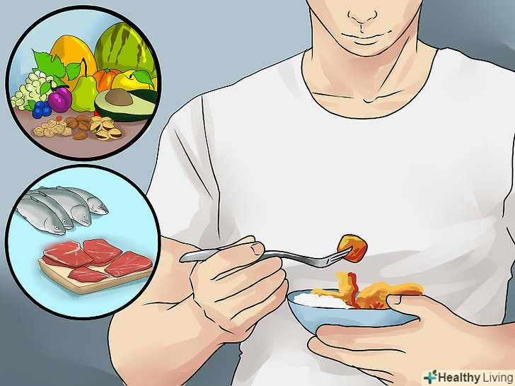 Забезпечте здорове і збалансоване харчування. харчування людини має бути максимально корисним для організму, особливо при професійних заняттях спортом. Шкідлива їжа перекреслює зусилля на тренуваннях. Основою раціону повинні стати листові овочі і бобові рослини. [22] відмовтеся від "порожніх калорій" (наприклад, газовані напої) і замініть їх корисними продуктами.- Якщо у вас непереносимість лактози, то відмовтеся від молочних продуктів. Спочатку це завдання може здатися складним, але вже через місяць ви відчуєте зміни на краще.